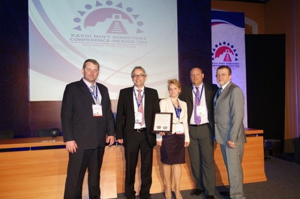| The heads of national mints around the world converged on Mexico City from May 11 to 17 for the 28th Mint Directors Conference. The experts discussed such topics as new alloys, colored coins, and ways to enhance counterfeit protection. The itinerary also included a visit to the Mexican Mint facility in San Luis Potosí, where several dozen Schuler machines produce pesos and centavos of various denominations.  In addition to blanking lines, edge-lettering and rimming machines, as well as numerous coining presses, the facility also boasts one very special machine: a specially equipped MRV 300. It is the first coining press to produce so-called tri-metal coins. In contrast to the one and two euro coins, for example, tri-metal coins not only have one ring around the core, but two. The machine has a vertical design and can join and mint coins in a single operation. Amongst other things, the Mexican Mint uses the Schuler MRV 300 with an output of up to 500 coins per minute to produce a medal to commemorate the Mayan culture. A further topic of the conference - which Schuler sponsors - was how tri-metal coins could also be used as circulation coinage to raise counterfeit protection, for example. |