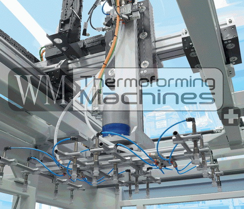 WM Wrapping Machinery SA designs and manufactures complete range of thermoforming plants including in-mould trimming machines with lower tilting platen and complete IN LINE solutions with dedicated extruders and calenders and peripheral units as dosing and scrap re-grinding groups.