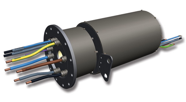 The slip ring can be part of a large wind turbine electric pitch control system with the option to integrate hydraulic pitch control systems if required. It can also be used on the yaw axis of small wind turbines. Speeds range from 0 to 100 rpm with through-bore model sizes up to 54 mm available.