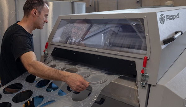Also at this year's event, the company will present its complete line of ThermoPRO machines, a new range of granulators specifically designed for in-line processing of skeletal waste from sheet and film thermoforming lines. The ThermoPRO is equipped with a brand-new heavy duty rollerfeed system that also can handle the start-up cups up to 200 mm height in the web, eliminating any extra labor costs and material waste. ThemoPRO with integrated loop control is made in super sound proof execution in order to operate at noise levels below 80dBA. Rapid Granulator currently offers 15 different base configuration machines, depending on customer requirements.