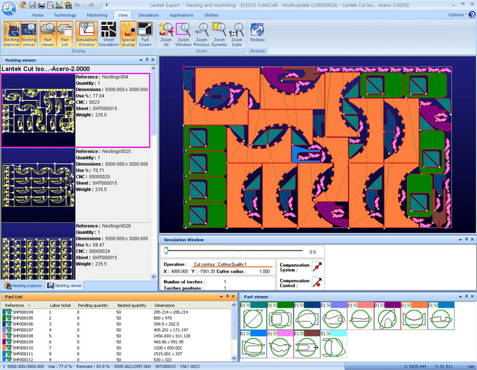 There are many companies which can offer CAD/CAM systems for sheet metal applications, but few have the ability to automate the process and even fewer have the capability to integrate with or can offer dedicated management systems. When managing large volumes of components, the CAD/CAM software needs to have the ability to integrate with third party manufacturing systems. Schedules are frequently very fluid, changing hourly so the ability to respond effectively to this dynamic situation will make manufacturing highly efficient. Typical complications include managing shortages, rejects and utilizing offcut material. On a practical level, especially when processing high value or large volumes of material companies can achieve very significant savings in material by working dynamically and producing nests of parts to suit the ever changing requirements. To achieve a satisfactory dynamic nest, the software needs to consider a range of factors including thickness, material type, grain and surface finish. For simplicity, some manufacturers stick to a static nest which has been prepared in advance. The disadvantage is that if the schedule changes, unnecessary parts will be cut, leading to wasted material and high levels of stock parts, which have to be stored until they are next required. In short, to achieve dynamic nesting the CAD/CAM software needs to be able to integrate with the company's manufacturing schedule and nest both quickly and efficiently - systems with parallel processing algorithms will have a distinct advantage.