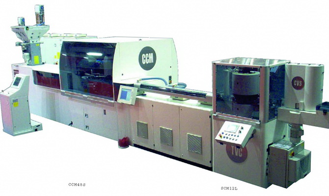 A great deal of attention will, of course, be focussed on the outstanding cap-making technology: CCM (continuous compression moulding) is currently the world's most competitive solution for the production of mineral water caps, hot and aseptic filling. Designed by the Sacmi Imola Closures Division, this series includes the top-of-the-range CCM 48SB, which will be on show at the fair. Capable of producing up to 1600 caps per minute with just 48 cavities, the press will be equipped with a mould suitable for the production of three types of S29W caps in HDPE with diameters from 29 mm and weighing just 1.25 grams. Its winning feature• The ratio between high output rates and consumption. Thanks to "lean technology", in fact, Sacmi has achieved further improvement of energy performance, while keeping cap production cycle times below 2 seconds. A great opportunity, then, for the Closures Division to show off the advantages of compression technology: ultra-low cycle times, low consumption and low maintenance costs. Extremely compact, this press will be displayed together with the CVS3000 vision system for in-line cap control; the latter has been developed by the Automation and Inspection Division, which will also be showcasing the innovative PVS-2, an in-line or off-line sampling system equipped with cameras for complete, precision control of preforms, both inside and out.