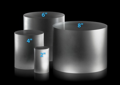 Hyperion is at volume production levels and can supply 50mm, 100mm, 150mm, and 200mm (2", 4", 6", and 8") diameter cores, epi-ready wafers, and PSS wafers. More information is available on www.hyperion-gc.com. |