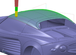 The most important new option is flowline machining. With flowline machining, the toolpath is divided between a pair of drive curves in a constant number of passes, rather than having a varying number of passes with a constant stepover. The toolpath will have its start and end passes on the drive curves, with the intermediate passes blending between them.