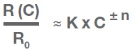 The relationship between sensor resistance and the concentration of the target gas is non-linear and can be expressed by the following equation over a certain range of gas concentration: Where