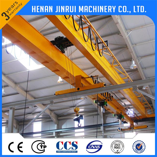 Double girder overhead crane is composed of box type bridge frame, lifting trolley, crane traveling mechanism, and electrical system. It is rely on the bridge frame along the workshop orbital direction moving longitudinal, the trolley along the main beam direction moving transverse and the hook lifting movement to work. It could be classified into several working duties,e.g.A5,A6,A7 according to the working frequency and pure working time. Double girder overhead crane allocation hook used in machining, assembly workshop, metal workshop, metallurgy and casting workshop and warehouse handling work; allocation of grab is suitable for metallurgy, cement, chemical or open fixed span in bulk material handling.
