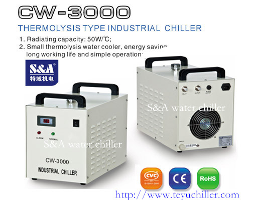 S&A CW-3000 series thermolysis type water cooler has compact design, with energy saving, high cost performance, good protection and alarm system. It''s mainly used on the equipment for heat exchange between the heat and the air environment. The water temperature of cw-3000 cooler is related to ambient temperature, so it''s thermostat is not manually adjusted.