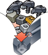 Stability and security are the key words in turning as reliable clamping of the insert has a great impact on the quality of the component. As the CoroTurn RC clamping system combines downward forces with tip seat positioning it presents rigid clamping of the insert and favourable repeatability when indexing the insert.
